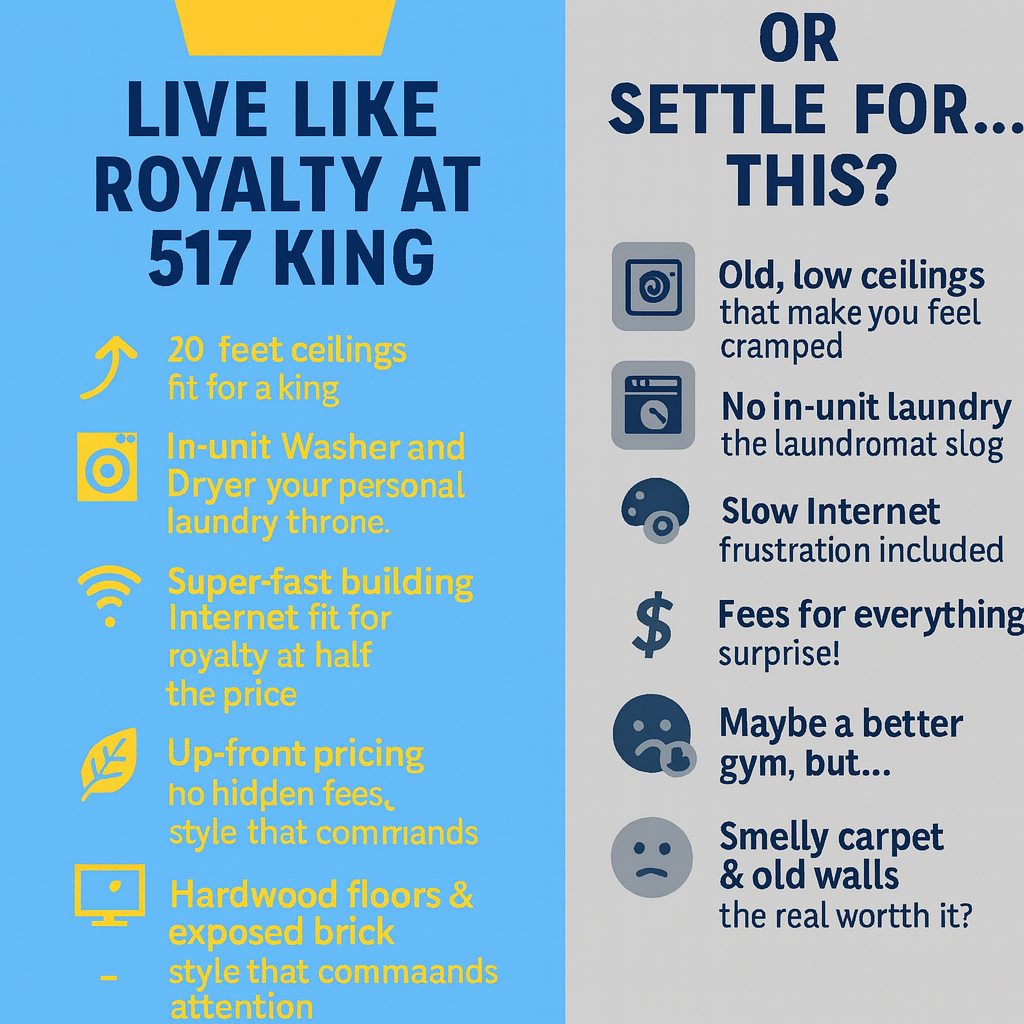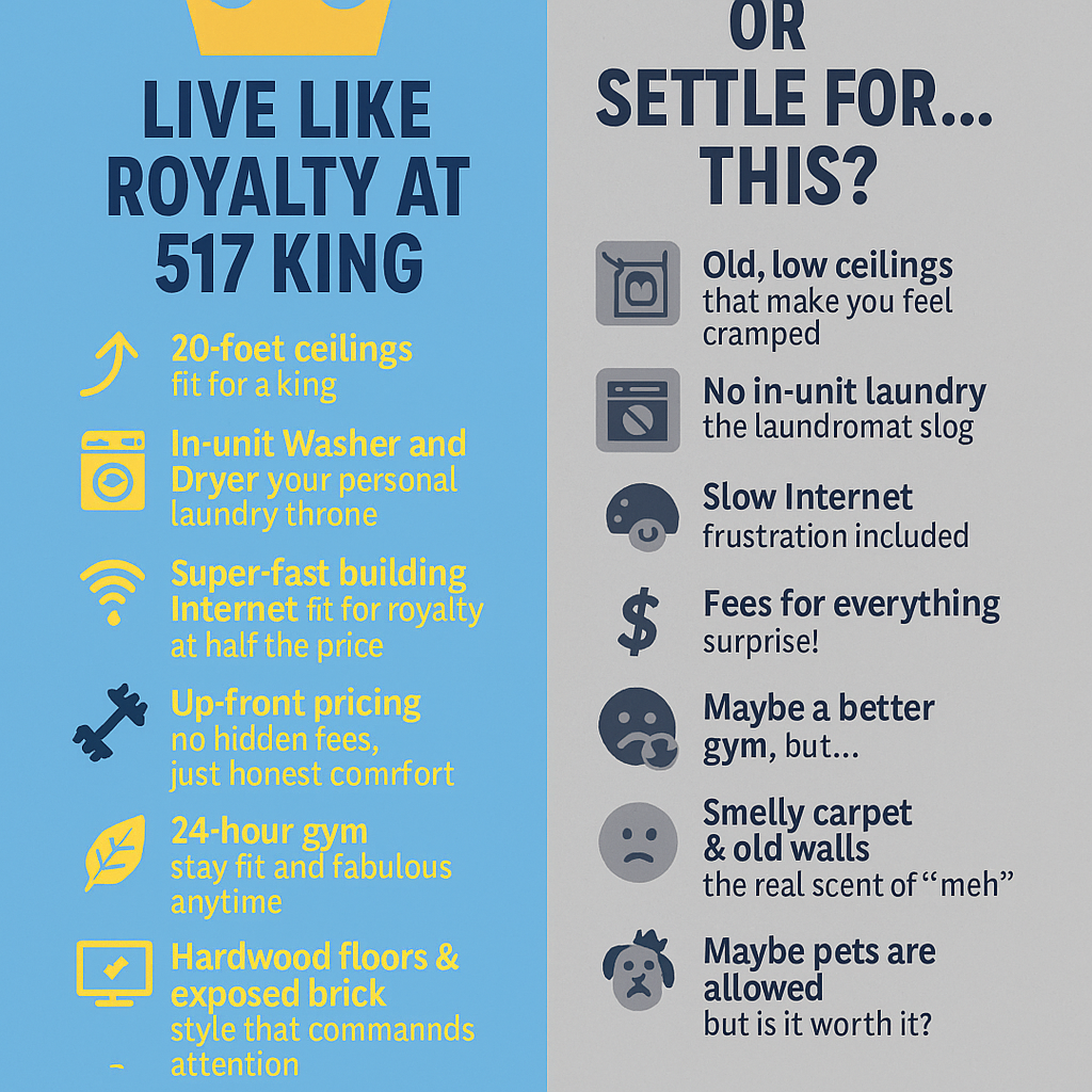 Management: At 517 King, we pride ourselves not only on our stunning architecture and modern amenities but also on our exceptional management team. Known for their responsiveness and reliability, our management is dedicated to ensuring you feel at home. Throughout the process, we are there to help you live and thrive at our community.